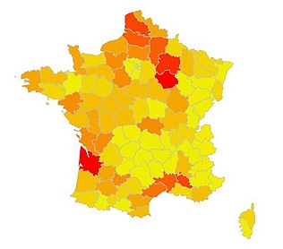 AUBE : 457 - CHARENTE : 324 - CHARENTE-MARITIME : 311 - GIRONDE : 289 - MARNE : 227.